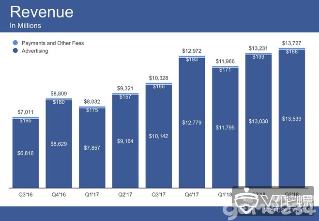 本周三,Facebook发布了该公司截至9月30日的2018年第三季度财报。财报显示,Facebook第三季度总营收为137.27亿美元,较上年同期的103.29亿美元增长33%;净利润为51.37亿美元,较上年同期的47.07亿美元增长9%。Facebook的2018年三季度财报显示,营收和利润均呈现增长态势,但依然没能达到华尔街的预期。用户增速放缓是Facebook的主要原因,视频消费成了新的目标高地。
